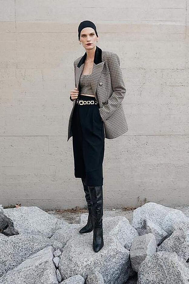 Se trata de un modelo de cuadros en tonos beige y marrones que tiene de especial que lleva el cuello en terciopelo negro. Ambas, de manga larga, poseen bolsillos delanteros y unos botones dorados redondos muy similares. La americana de Sfera forma parte de la colección Woman 80's Foundation y todavía no está a la venta en su página web, pero es probable que ya esté en tienda y que quede muy, pero que muy poco para que llegue online.