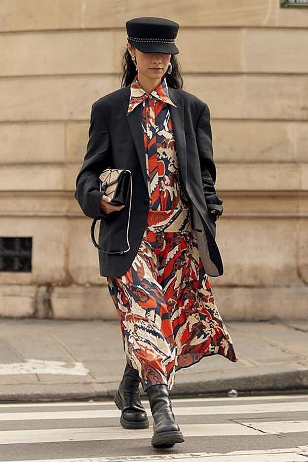 Los vestidos camiseros recuperan el pulso de los tiempos y se actualizan recurriendo a compañeras tan fieles como una blazer de corte masculino y otras tan rompedoras y novedosas como la imprescindible bota militar con suela de goma