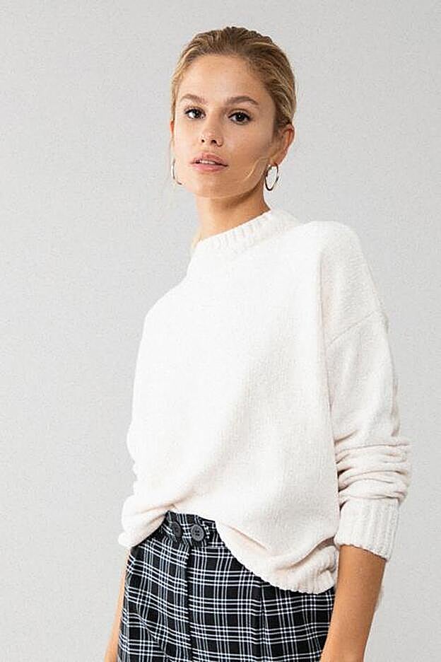 Por último, añadió un jersey con cuello perkins de chenilla en color crudo. Un modelo muy gustoso y suave de corte cuadrado que cuesta 14,99 euros y que también está disponible en rosa palo y negro y desde la talla XS a la XL. Una prenda súper ponible que combina a la perfección con todo y que no te querrás quitar en todo el invierno por lo calentita que es.