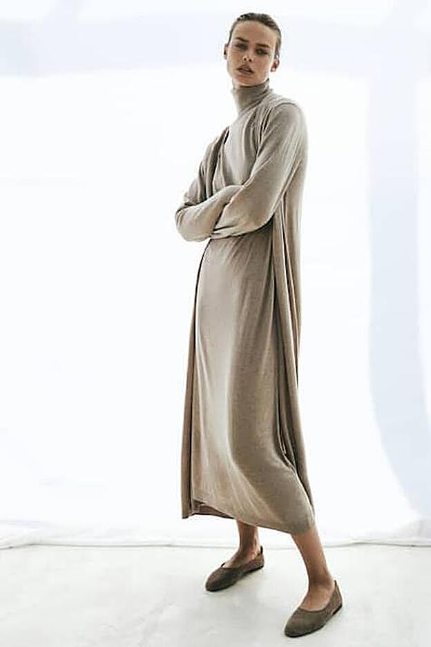 Eugenia Silva apostó para un look otoñal por dos prendas de la colección 'comfy' que ha sacado a la venta Massimo Dutti. Un conjunto de punto en color visón formado por un vestido largo de lana y seda de manga larga, cuello alto y acabados acanalados y un cárdigan a juego también largo y sin cierre. Cada prenda cuesta 79,95 euros y ambas están disponibles en la web de la firma en las tallas S, M y L. Ideal, ¿verdad?