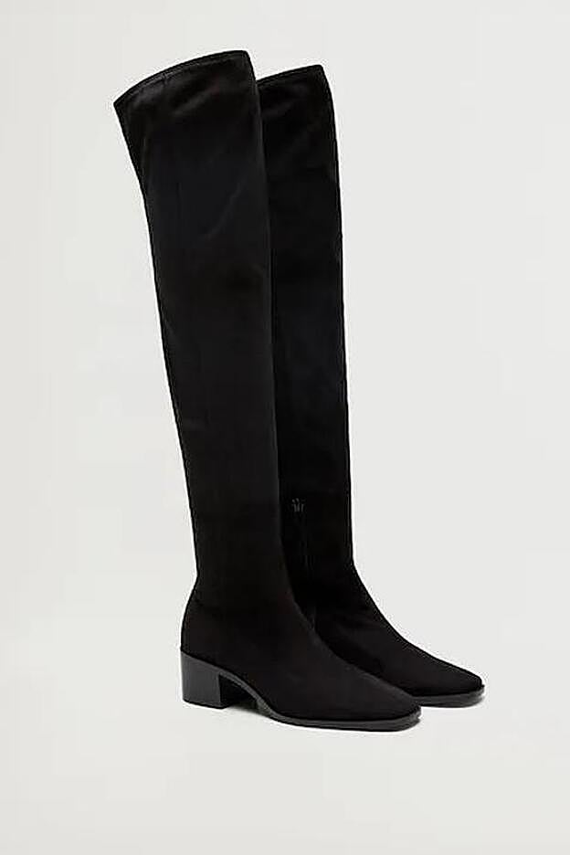 2. Bota alta de tacón cómodo y caña elástica de Mango. Un calzado que es pura tendencia no solo a su punta cuadrada y a su tejido calentito de ante, también porque se trata de un modelo para llevar este invierno y todos los inviernos de tu vida porque nunca pasa de moda. Tanto es así que en la web de la firma barcelonesa ya está prácticamente agotadas y con lista de espera. Solo quedan en las tallas 37, 38 y 40. ¿Su precio? 49,99 euros. ¡No las dejes escapar!
