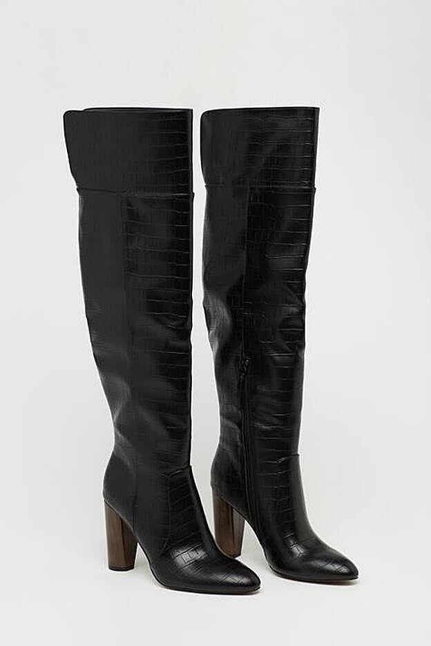 La actriz ha combinado una camisa blanca larga y de corte oversized con unas botas de tacón de estilo mosquetero. Un modelo de Sfera de efecto piel de serpiente con el tacón de madera que cuestan 49,99 euros y que tienen un efecto estilizador gracias a la caña que queda por encima de la rodilla. Un diseño tendencia muy bonito que además abrigan muchísimo para estos días de frío y tienen un tacón ancho que parece de lo más cómodo. ¡Nos encantan!
