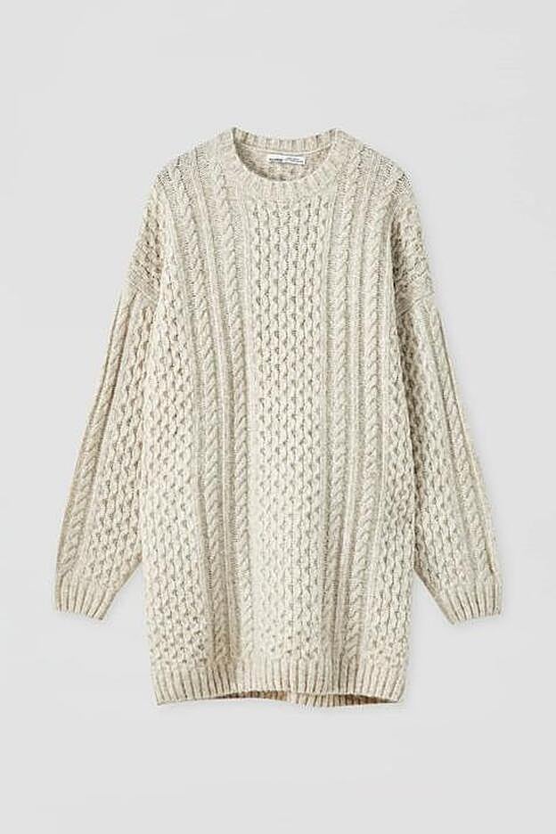 La menor de las Pombo ha demostrado que este tipo de vestidos de punto son perfectos para todas las figuras, ya que ella lo ha elegido para uno de sus looks de premamá. En color arena vigoré, con diseño de ochos, cuello redondo, manga larga y al estilo jersey oversize. Una opción súper práctica y calentita que también funciona fenomenal con vaqueros pitillo y zapatillas o zapatos de tacón. Cuesta 29,99 euros y está disponible en las tallas S, M y L.