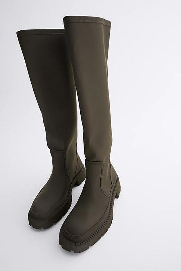 Y qué decir de las botas. Planas, engomadas para días de lluvia, de caña alta y en color verde caqui. Alargan visualmente las piernas y sientan de maravilla con vestidos pero también con faldas, con pantalones ajustados o con monos. Son el best seller de la temporada y todas las firmas low cost (y no tan low cost) las han incluido en sus colecciones. En Zara están agotadísimas pero a la espera de su reposición. Solo tienes que apuntarte a su lista de espera y esperar (valga redundancia) a que vuelvan. ¡La esperanza es lo último que se pierde! Por el momento ve preparando los 45,95 euros que cuestan.