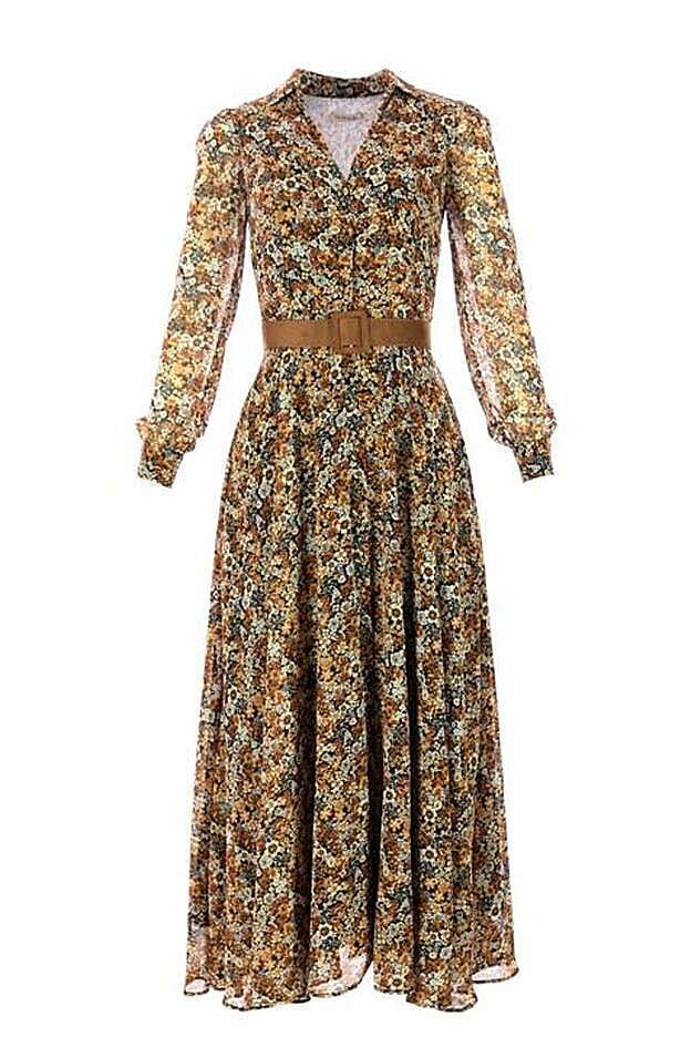 Un diseño de manga larga semitransparente con cuerpo camisero y cierre de botones delantero que va ceñido a la cintura y deja la falda de corte fluido. Una parte inferior que lleva una abertura lateral muy sexy que estiliza muchísimo. La prenda, que cuesta 129 euros, es de un favorecedor estampado con flores pequeñas en tonalidades marrones perfectas para esta época otoñal.