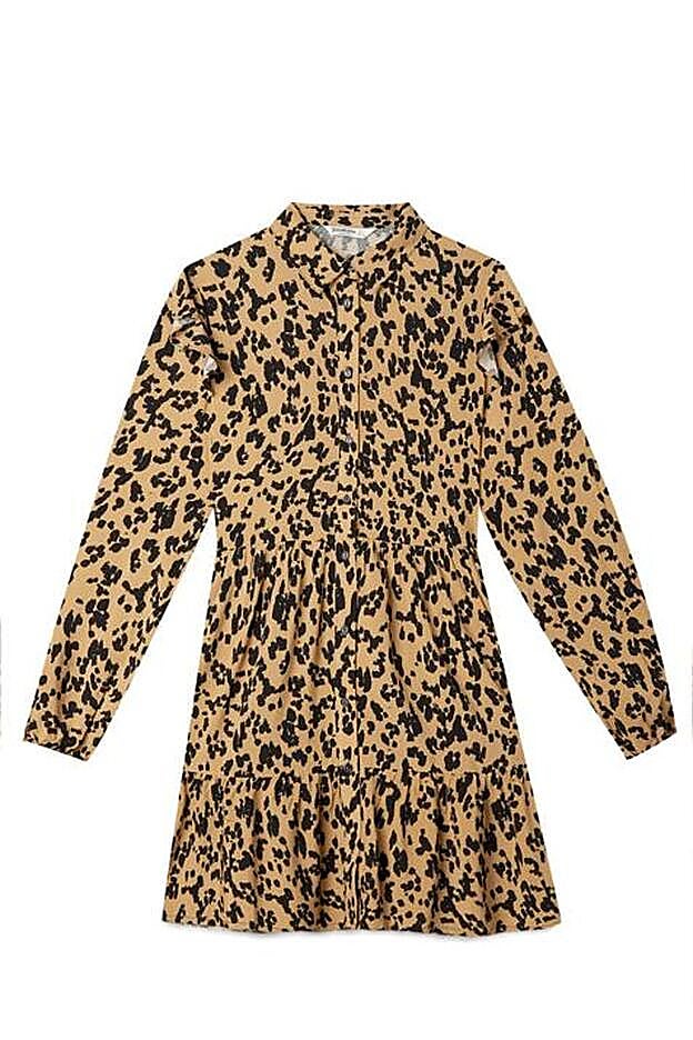 Paula escogió para un look del día a día uno de las prendas estrellas de la colección de otoño/invierno de Stradivarius. Se trata de un vestido camisero con el cuello solapa, la manga larga y un detalle de volante en la sisa. Una prenda fluida y nada ceñida que tiene el bajo acabado con volante, que le da movimiento y soltura. Cuesta tan solo 17,99 euros y está disponible en diferentes estampados.