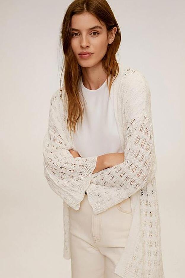 Cárdigan con detalles calados en color blanco roto: 15,99 euros (antes 25,99 euros).