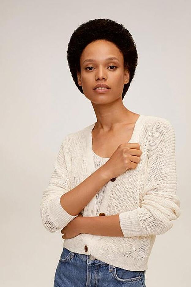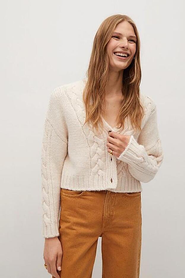 Chaqueta de punto algodón lino en tono crudo: 19,99 euros (antes 25,99 euros).