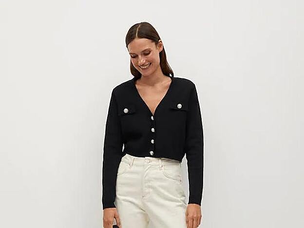 Cárdigan negro con botones perla: 23,99 euros (antes 29,99 euros).