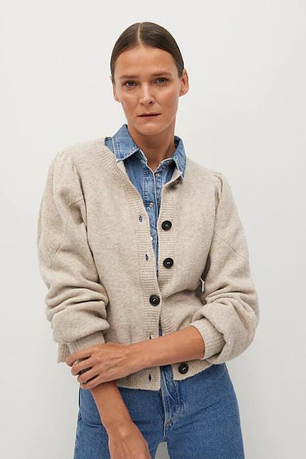 Cárdigan beige de manga abullonada: 23,99 euros (antes 29,99 euros).