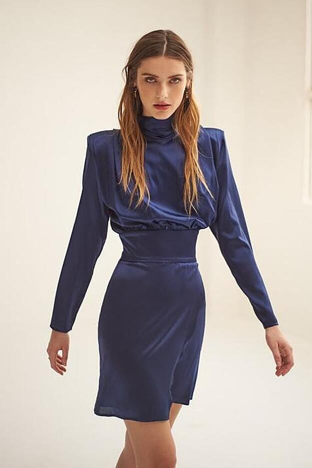 De la mano de su estilista Inma Fernández, Eva escogió para visitar el programa de Pablo Motos un vestido corto en color azul oscuro con un diseño muy original de la firma Wolflamb. Una prenda de seda con acabado satinado brillante, de manga larga y hombreras pronunciadas que sienta de maravilla gracias a su fajín que marca la cintura. La falda es de corte recto y mini y el cuerpo es holgado con el cuello subido, que estiliza y favorece muchísimo.