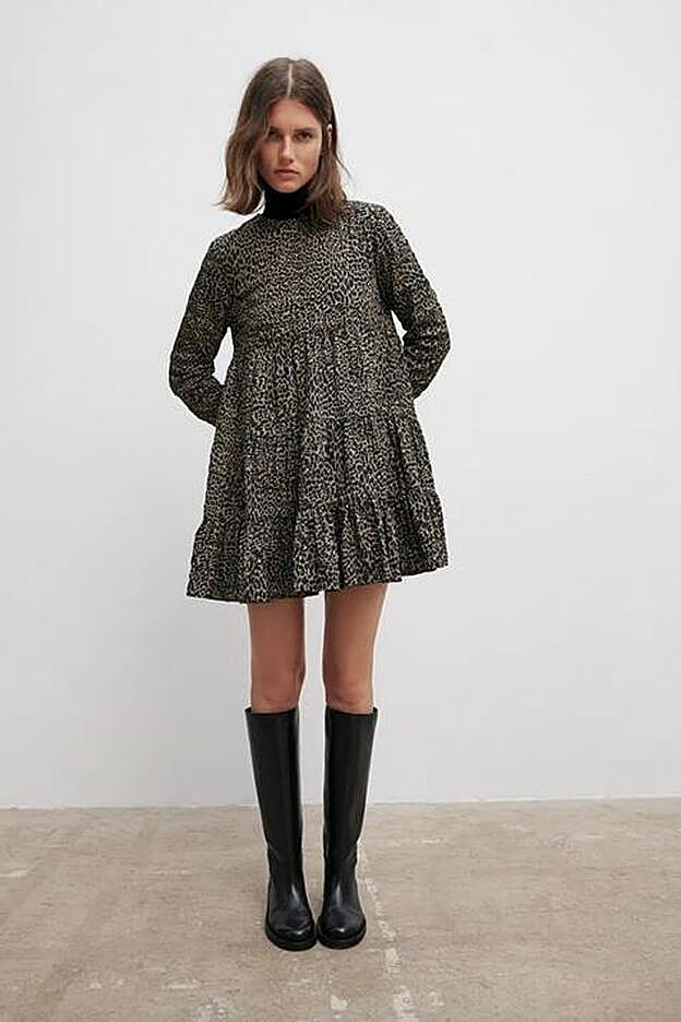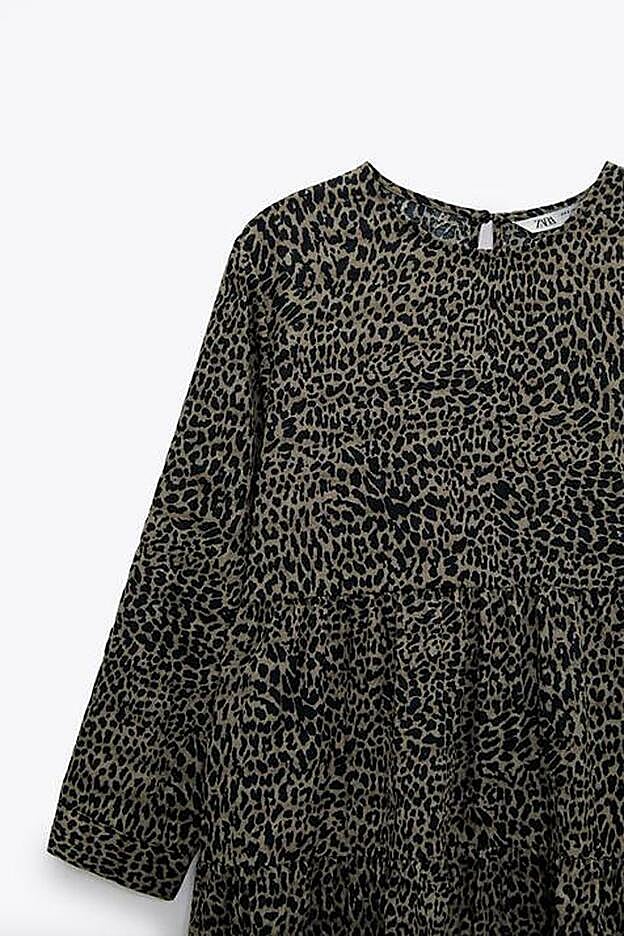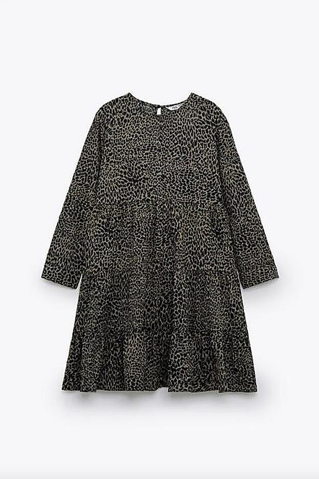 Con diseño baby doll en un bonito color piedra con estampado de leopardo, este vestido es perfecto para apostar por un abrigo largo y esconder, hasta que sea necesario, el impecable protagonista de nuestro outfit.