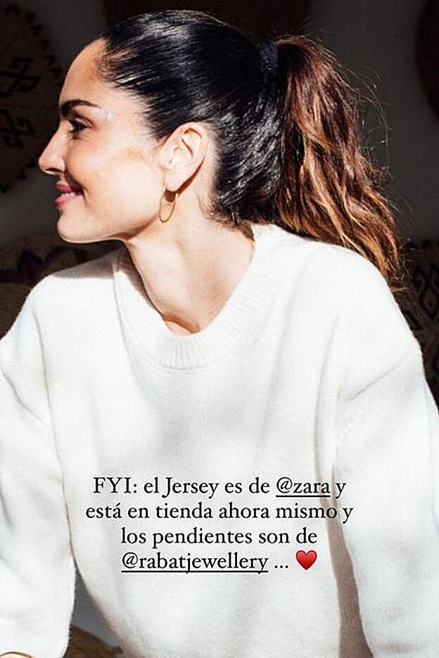 Están jerséis originales y llamativos como este de rayas de Zara de Nagore Robles y están otros básicos y secillos como el de Oysho de Katie Holmes. Y está claro que Eugenia Silva es de las segundas. La modelo demuestra a diario que con prendas básicas como estos pantalones blancos de Mango se pueden conseguir looks muy elegantes y triunfadores como este que llevó con un conjunto de punto y botas. Ahora, ha dejado claro que su jersey favorito es un modelo de Zara muy ponible y barato.