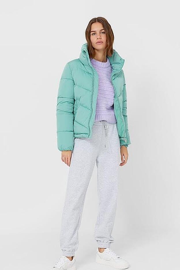 Hablamos de un abrigo tipo plumífero con cuello chimenea, cierre de cremallera y bolsillos delanteros con forro polar interior. Lo mejor de todo es que está disponible en tres tonos super tendencia y super favorecedores que podrás combinar con cualquier estilismo: en amarillo pastel, en lila y en un verde agua irresistible.