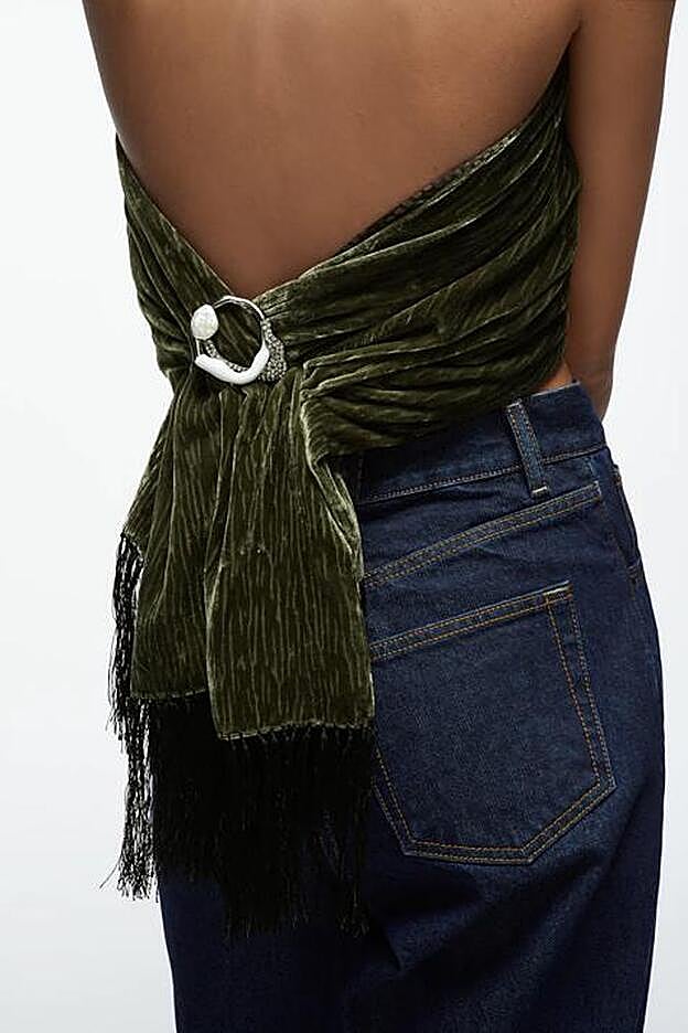 Un gesto tan sencillo, estiloso ¡y gratis! consigue que, de un complemento tan usado en invierno como la bufanda, creemos una prenda única. Y es que, aunque esta vez nos hemos inspirado en el lookbook de la nueva colección de fiesta de Zara con esta bonita bufanda de terciopelo verde musgo, lo cierto es que puedes hacerlo con cualquiera que tengas en casa, incluidos tus pañuelos favoritos. Después, bastará con combinarlo con unos pantalones de talle alto que marquen cintura o, incluso, con tus vaqueros favoritos, y tendrás el mejor estilismo de estas Navidades... diferentes.