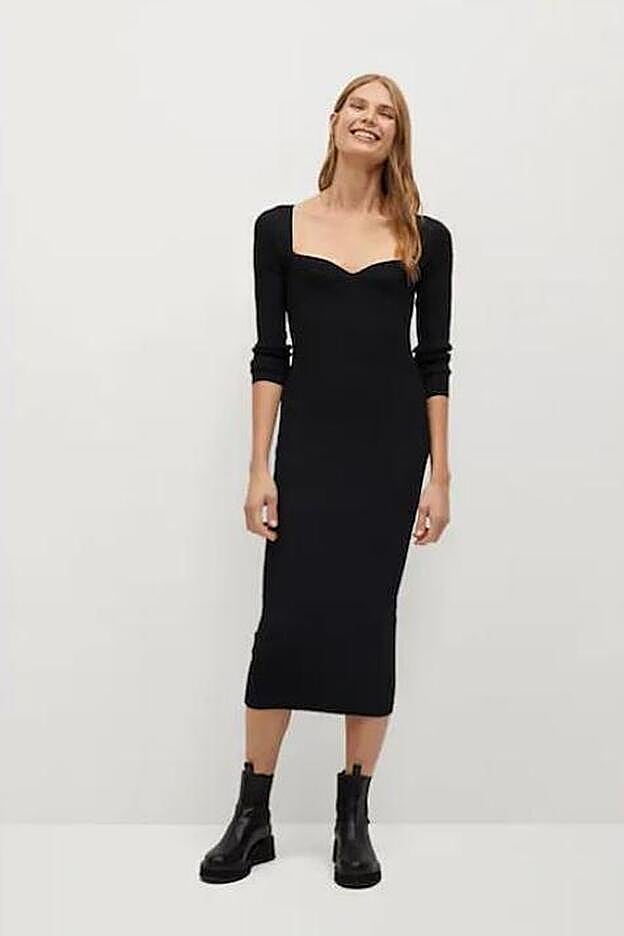 Si lo que buscas es un vestido más para ocasiones especiales, pero que también sea cómodo y que siente bien, esta opción de Mango es ideal. Lleva el escote en forma de corazón y cuesta 39,99 euros.