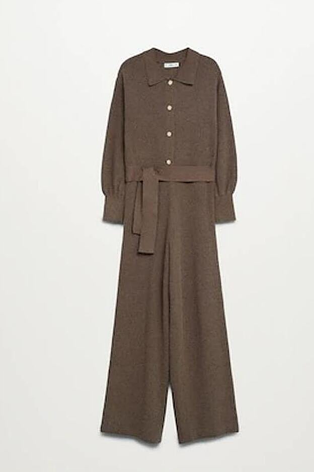 Diseño largo, pantalones anchos y fluidos, cuello de camisa y cierre de botones, en un tono marrón neutro super favorecedor y con el truco de estilo ideal para presumir de figura a cualquier edad: el cinturón.