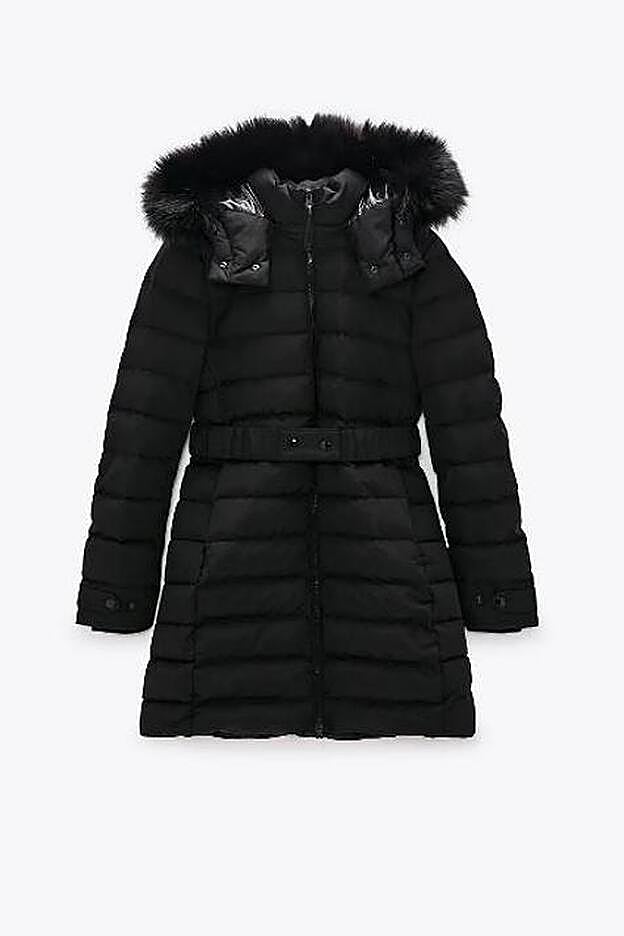 Lo mismo ocurre con el segundo modelo rebajado que tiene Zara. Se diferencia en que tiene un diseño largo y es en color negro. En lo demás es prácticamente igual: relleno de pluma y plumón, cuello subido y una capucha desmontable con efecto pelo, esta vez, en color negro. ¿El precio? Algo más caro. Está rebajado a 49,99 euros, pero es que antes rozaba los 90 euros, por lo que es una de estas compras que sí es todo un acierto.