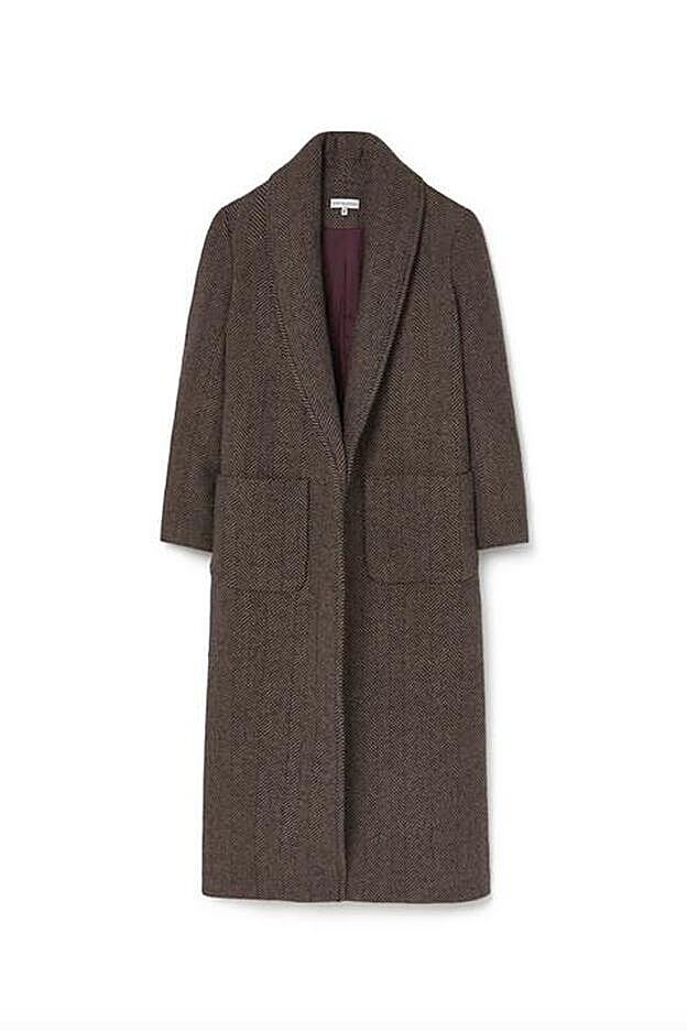 Se trata de un bonito abrigo gris con dibujo de espiga que pertenece a una de las firmas de moda favoritas de las influencers, la de María de la Orden.