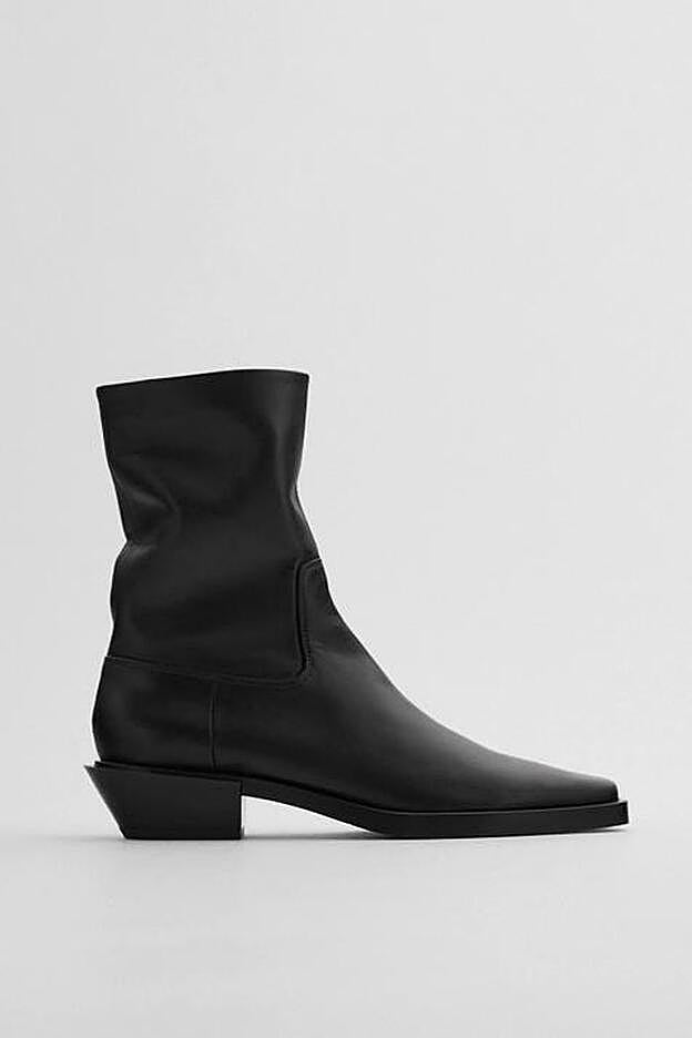 Empezamos con los botines negros de piel tipo cowboy que arrasan en ventas y que sientan de maravilla con todo. En los Special Prices hemos encontrado estos de tacón cómodo que no te vas a querer quitar en todo el invierno. Lo podrás llevar en 2021 a la oficina y a los festivales que nos esperan. Están rebajados de 69,95 euros a 39,99 euros y están disponibles desde la talla 36 hasta la 42.