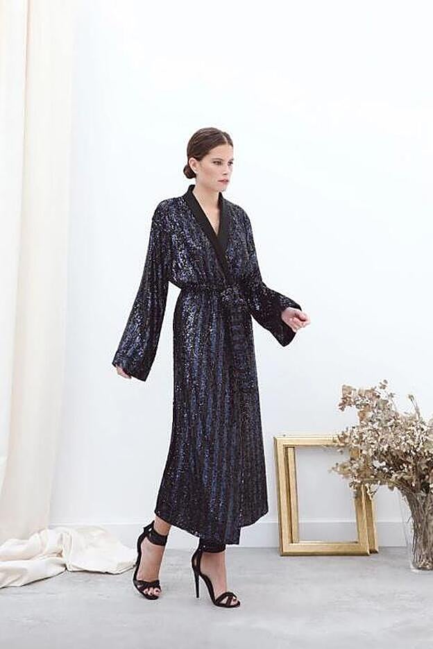 Y es que, aunque este año las celebraciones han sido caseras y en 'petit comité', muchas no han (hemos) querido renunciar a un buen look de fiesta, aunque fuera para no movernos de nuestro salón. Por eso, tanto Vicky Martín Berrocal como Alba Díaz se han rendido al brillo de las lentejuelas, pero en su versión más cómoda: con una elegantísima bata bicolor en negro y azul noche de Victoria Collección que demuestra que los kimonos son la prenda más favorecedora, tengas la edad o la talla que tengas.