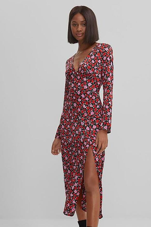 Sí, las flores nunca fallan y un vestido de este estampado es ala prenda que todas tenemos, queremos o no al menos nos gustan. Y si tiene un diseño y una silueta tan favorecedora como este modelo de Bershka, aún más. Midi, escote en pico, abertura lateral y ceñido en el pecho y la cintura. ¿Qué más se puede pedir? Pues una rebaja. Y este costaba 35,99 euros y ahora cuesta 19,99 euros (cómpralo aquí).