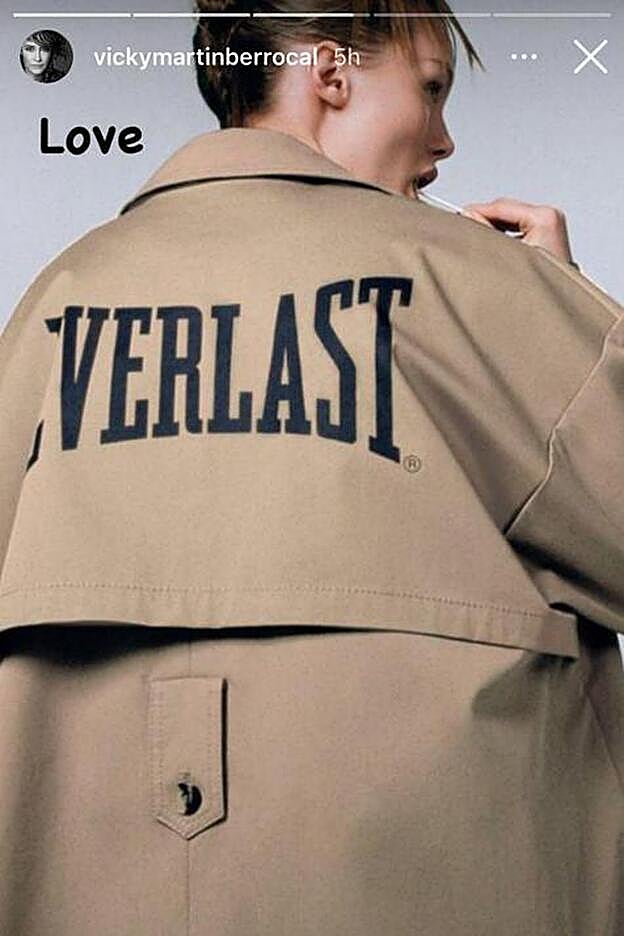 Parece que la diseñadora ha sido una de las que tampoco ha podido resistirse a la colección cápsula que Zara ha lanzado con la mítica firma norteamericana Everlast, la marca de boxeo más icónica de la historia fundada en el Bronx en 1910. Vicky ha fichado una de las prendas más deseadas de la colección: una gabardina con el nombre de la firma estampado en la espalda.