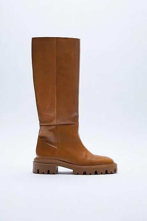 Se trata de unas botas altas que su diseño sigue la tendencia de las engomadas que tanto éxito han tenido al finales del 2020. Son de piel, en color camel, de caña alta y tienen una suela track y dentada. Además, son de puntera redonda y tienen una plantilla técnica flexible de espuma compuesta de látex, diseñada para ofrecer un mayor confort.