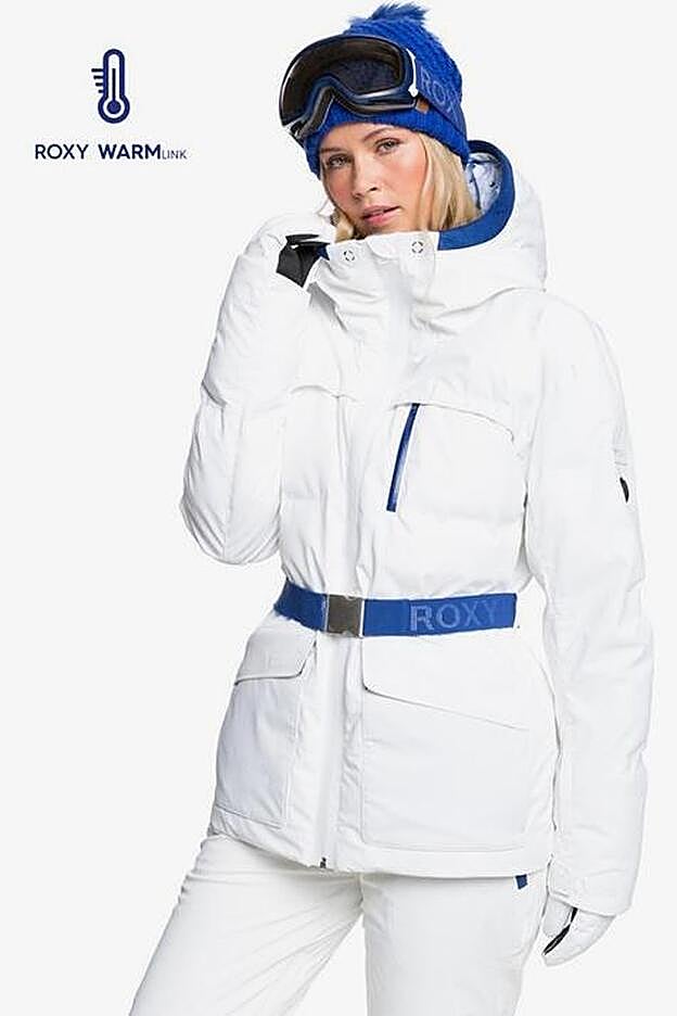 Se trata de una chaqueta para nieve de corte ceñido y cintura entallada gracias a un cinturón azul a contraste. Es impermeable, con capucha y es, sin ninguna duda, la más calentita de todos porque tiene un panel calentador avanzado de alta tecnología que regula la temperatura. Además, es de un tejido aislante súper térmico, ligero y transpirable para mantenerte a gusto durante los días más fríos del invierno.