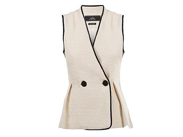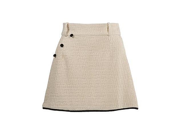 Escogió así la minifalda de cintura alta con bordes negros bordados (275 euros) y la llevó a conjunto con el chaleco con cuello en V y cierre frontal con doble botonadura en el pecho (156 euros). La chaqueta (325 euros), por su parte, es un modelo cropped con bolsillos que es perfecta para llevar con el resto de piezas, pero también como blazer ponible en el día a día con, por ejemplo, unos vaqueros.