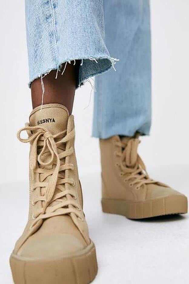 Uno de los productos personalizables de Zara que prometen tener más éxito son estas zapatillas que parecen de lujo. Se trata de un modelo abotinado con suela ancha de goma y cierre de cordones al que puedes añadir una palabra en la lengüeta. Cuestan 29,95 euros y prometen agotarse en muy poco tiempo.