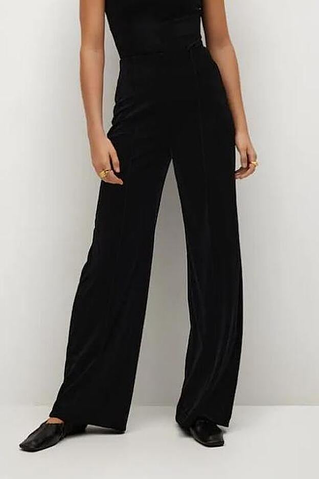 Nuria se refiere a unos pantalones en color negro con pernera acamapanda y talle alto que, efectivamente son del pasado año, pero que para nuestra suerte, han vuelto a la firma con una buena rebaja. Costaban 29,99 euros y ahora puedes hacerte con ellos por 19,99 euros. Son un modelo palazzo que sienta de lujo y que son cómodos como un pijama, pero su tejido más festivo hacen que sean perfectos para añadir a looks elegantes. ¡Ideal!