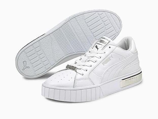 Se refiere a las nuevas Puma Cali Star Metallic, unas zapatillas de punta redonda, suela con un poco de plataforma, cierre de cordones y un detalle matalizado plateado en la parte trasera del calzado. Cuestan 99 euros (cómpralas aquí) y están disponibles también en color negro con el detalle en dorado y otras tonalidades similares.