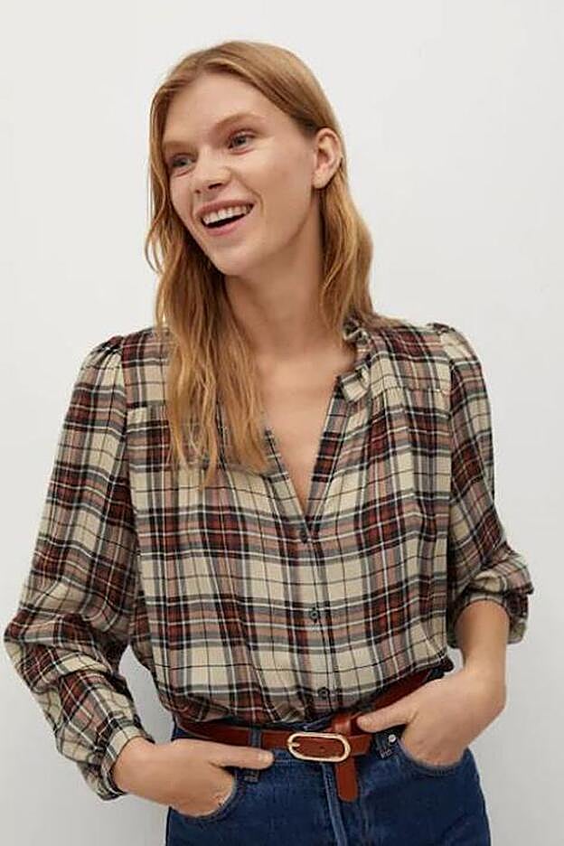 En dicha fotografía, la presentadora luce un look de básicos formado por una camisa, unos pantalones vaqueros y unas botas. Sin embargo, es la primera prenda la que se lleva todo el protagonismo gracias a su bonito estampado de cuadros. En concreto, se trata de una blusa de cuadros escoceses en tonos beige y granate confeccionada en tejido de lana que ahora está rebajada a 19,99 euros. Es un diseño original porque tiene el cuello de pico, en vez de solapa, lleva un volante en el cuello y tienes las mangas abullonadas. ¡Ideal!