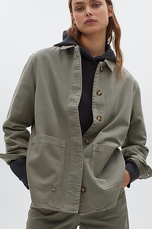 La apuesta caqui de la firma tampoco tiene desperdicio, especialmente en los looks más casual. Confeccionada en tejido 100% algodón, viene con cuello clásico, dos bolsillos laterales de plastrón y cuello clásico. Con cierre de botones frontal ocultos por tapeta y bajo asimétrico, cuesta 49,95 euros y está disponible en las tallas S, M y L.