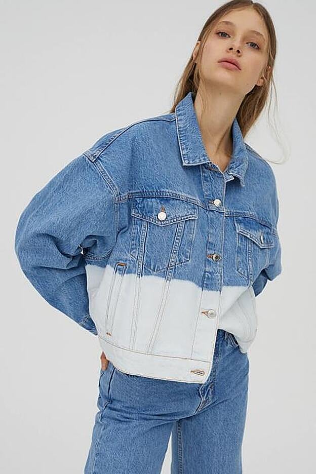Terminamos con la cazadora vaquera de Pull&Bear más atrevida y original. La de estampado tie dye de estilo noventero solo apta para las más atrevidas. Con ella crearás looks de otro nivel y elevarás tus básicos a la altura del street style. Perfecta para llevar en un total look denim o con cualquier tipo de falda o vestido. (