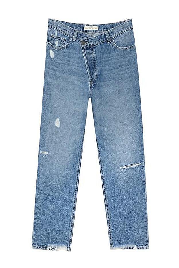 Y parece que no somos las únicas que hemos fichado esta novedad, porque son unos pantalones vaqueros que ya están agotados desde la talla 23 a la 40 y solo quedan disponibles en la web las tallas 42 y 44. Y no nos extraña, porque cuestan tan solo 25,99 euros y tienen la pernera con rotos, una de las tendencias de la temporada. Además, poseen un fit recto que queda muy bien y está ahora muy de moda. Nosotras ya estamos deseando que Stradivarius los reponga, ¿y tú?