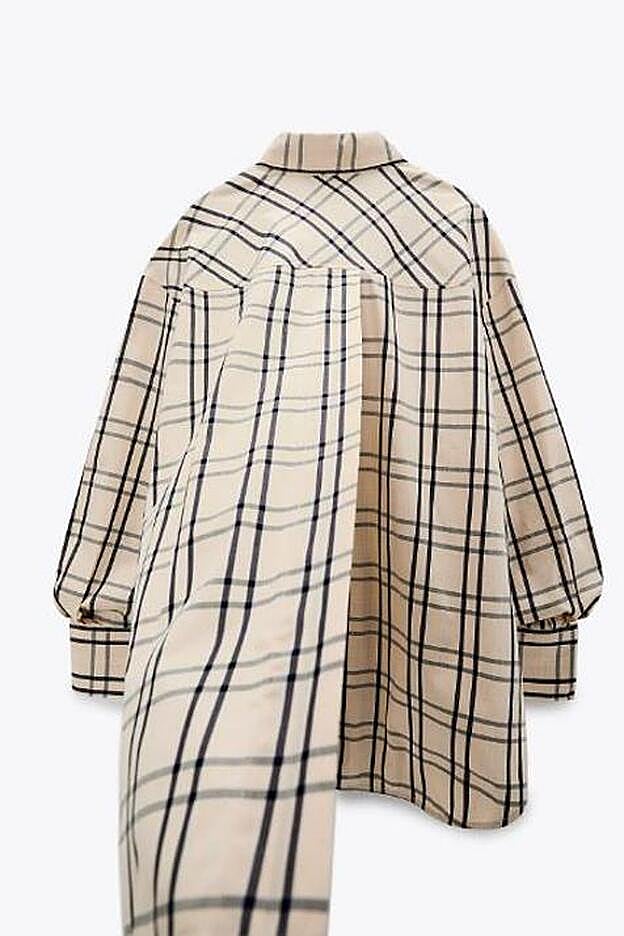 Se trata de una camisa de cuadros en color vainilla con el estampado a contraste en color negro y gris. Es de manga larga y de corte masculino y oversized. De hecho el bajo de la prenda queda a la altura del muslo, dependiendo siempre de cada altura. Cuesta 25,95 euros y está disponible en una buena amplitud de tallas: desde la XS a la XXL. Hasta ahí, parece una simple camisa de cuadros ideal para llevar con vaqueros, por ejemplo, y triunfar en el día a día.