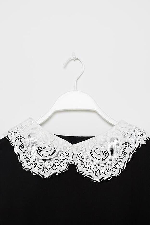 Lo mejor es que para copiarle hemos dado con un cuello de encaje en clave low cost que no ha pasado desapercibido ante nuestros ojos. Un cuello rebajado de la colección de Sfera que cuesta menos de 5 euros y que nos vamos a comprar ya mismo. Se trata de un cuello de puntilla en color blanco que se coloca fácilmente gracias a su cierre tipo colgante. Encuéntralo en la firma rebajado de 9,99 euros a 4,95 euros. En otras firmas con ASOS también hay algunos diseños tipo cuello bob en blanco que nos han enamorado.