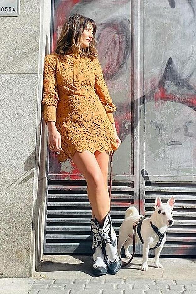 Nagore aprovechó el buen tiempo que ha hecho este fin de semana en Madrid, para sacar de su armario un vestido más fresquito y unirse a su fórmula favorita que triunfa en primavera: la de vestido mini con botas. La presentadora recurre a esta combinación en casi todas sus apariciones televisivas y ha demostrado que también la usa, por ejemplo, para una tarde de paseo con su perro por la capital.