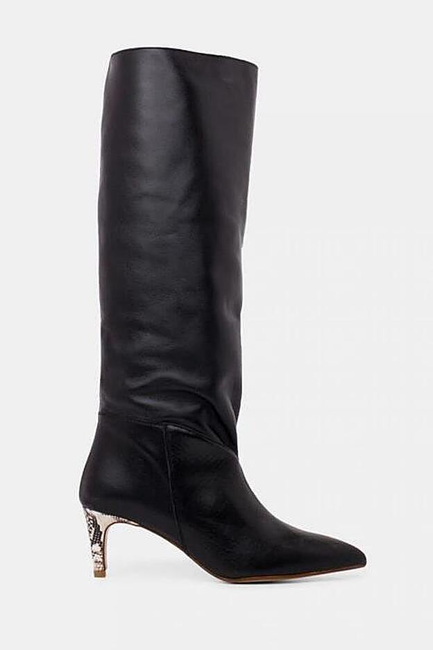 Carmen Lomana ha elegido unas botas altas con tacón cómodo de la firma Cuchy. En concreto, el modelo Alpha Black, que está hecho con piel negra y tacón de pitón natural con una altura de 5,5 centímetros para alargar visualmente las piernas sin perder la comodidad. Además, su caña tiene un pliegue que permite llevarlas arrugadas, tal y como las lucen las chicas que más saben de moda. También tiene un forro interior suave y calentito.