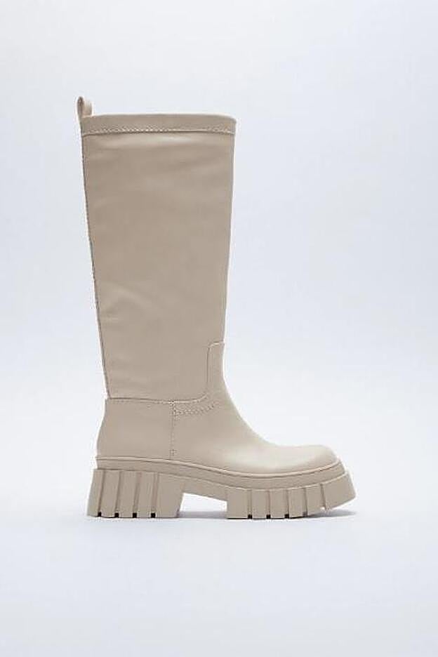 Se trata de unas botas en color blanco engomadas con suela track dentada y caña alta y ancha. Un diseño idéntico al verde caqui que tuvo a finales del 2020 y que este año llega en tonos más claros para llevar en primavera. Cristina se ha atrevido con este modelo que ahora está rebajado a 35,99 euros (en vez de 59,95 euros) y que todavía está disponible en todas las tallas: desde la 35 a la 42.
