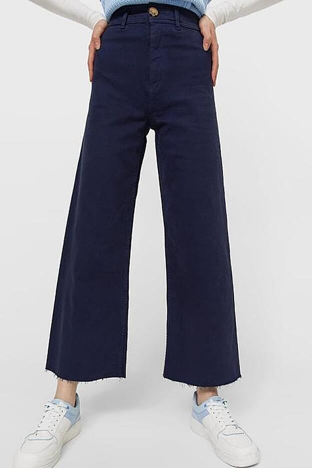 Ajustados en la cintura y anchos en el bajo, estos pantalones de tiro alto con el bajo deshilachado y cierre clásico de botón y cremallera, gustan tanto gracias a su efecto estilizador. Sí, adelgazan y son perfectos para presumir de piernas en todo tipo de looks.