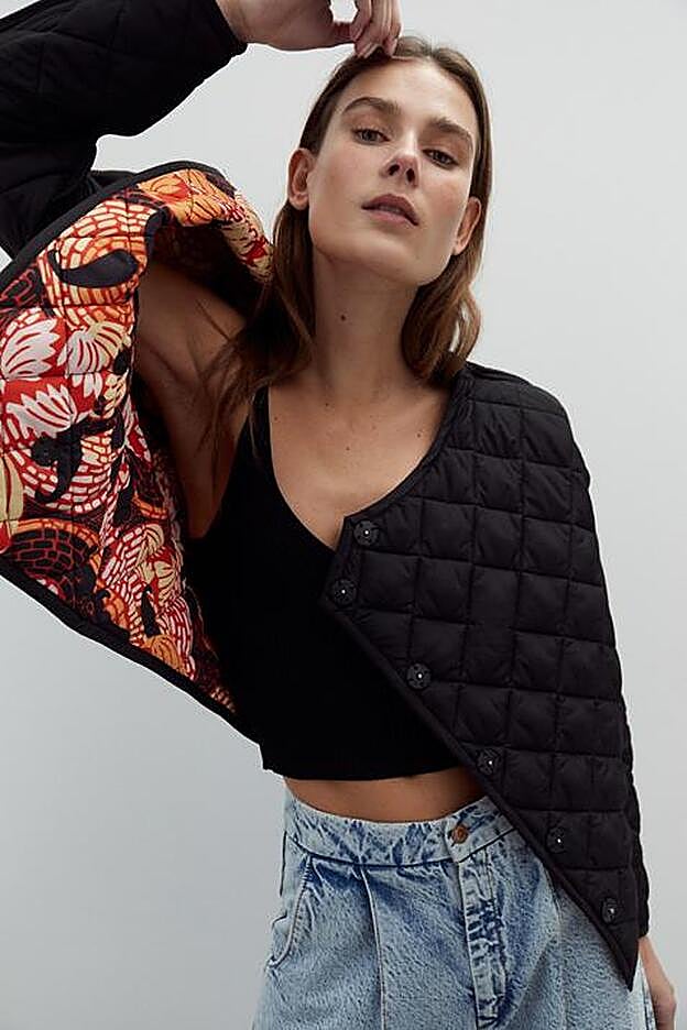 Hablamos de una chaqueta acolchada que es un dos en uno por su tejido reversible. Por un lado es de color negro, un básico que pega con todo y que podrás usar en un sinfín de ocasiones. Por el otro, tiene un estampado en tonos rojos y naranjas perfecto para dar vida a tus looks más básicos. Es decir, por 39,99 euros podrás hacerte con dos chaquetas que no te vas a quitar en todo el entretiempo porque además su tejido es lo suficientemente grueso como para abrigar, pero no demasiado.