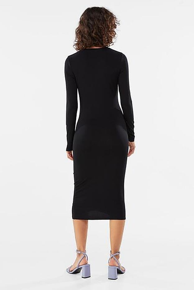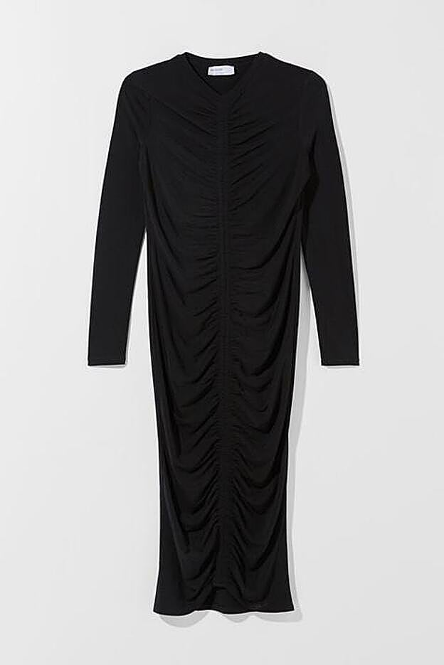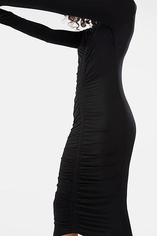 Porque la firma de Inditex ha apostado por el color negro para un diseño fruncido que lo mismo nos podemos poner en un look de oficina atrevido que convertirlo en el vestido de cabecera para las noches más especiales. Y es que su favorecedor diseño y su color lo convierten en una prenda ideal para combinar con cualquier accesorio y calzado.