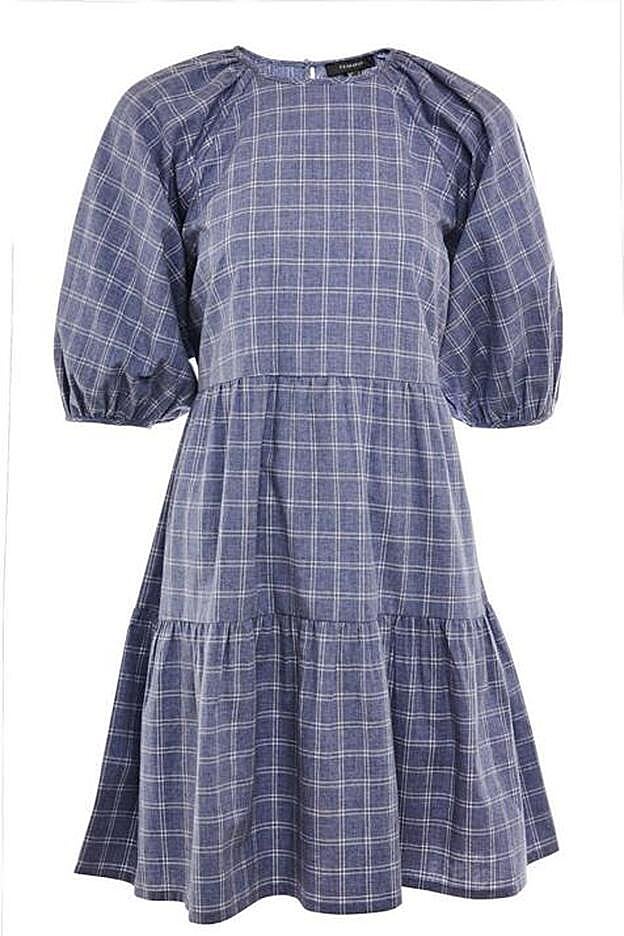 Comenzamos con un vestido mini baratísimo que solo cuesta 16 euros y que se va a agotar en Primark antes de la primavera. Se trata del modelo Navy Check Print Tiered, que combina un estampado de cuadros, unas mangas abullonadas preciosas y un bajo acampanado con vuelo que resulta irresistible. Con botas negras XXL acertarás, con botines blancos elevarás el look y con sandalias de tacón lo convertirás en un vestido elegante y sofisticado.