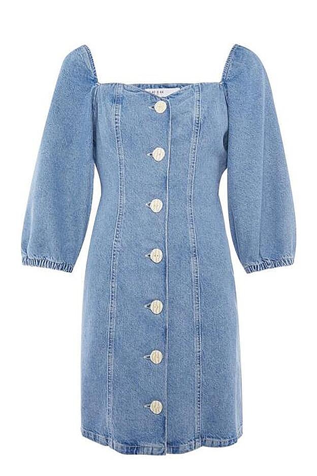 Para terminar, no hemos podido evitar rendirnos a la tendencia denim con este vestido vaquero corto y entallado con cierre de botones, escote corazón y mangas amplias. Ideal para presumir de figura junto a unas botas blancas o a unas sandalias planas y cómodas para un look todoterreno que llevarás de la mañana a la noche. ¿Su precio? 19 euros.