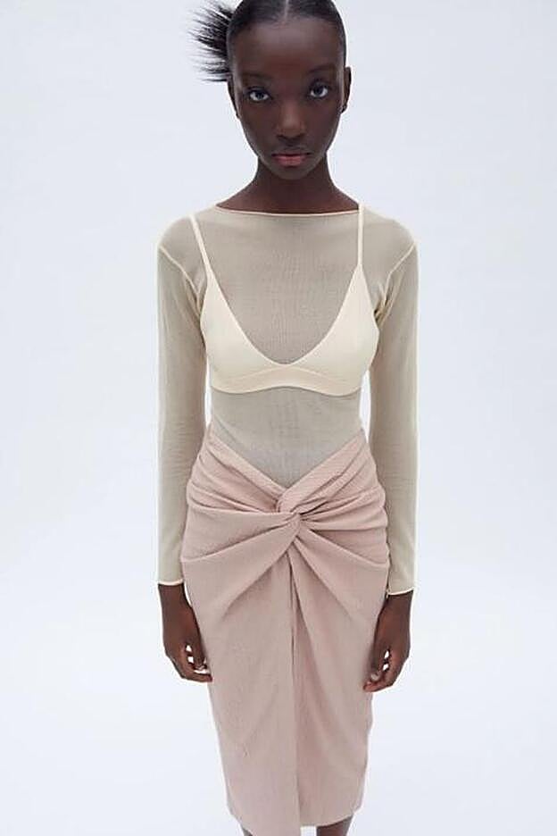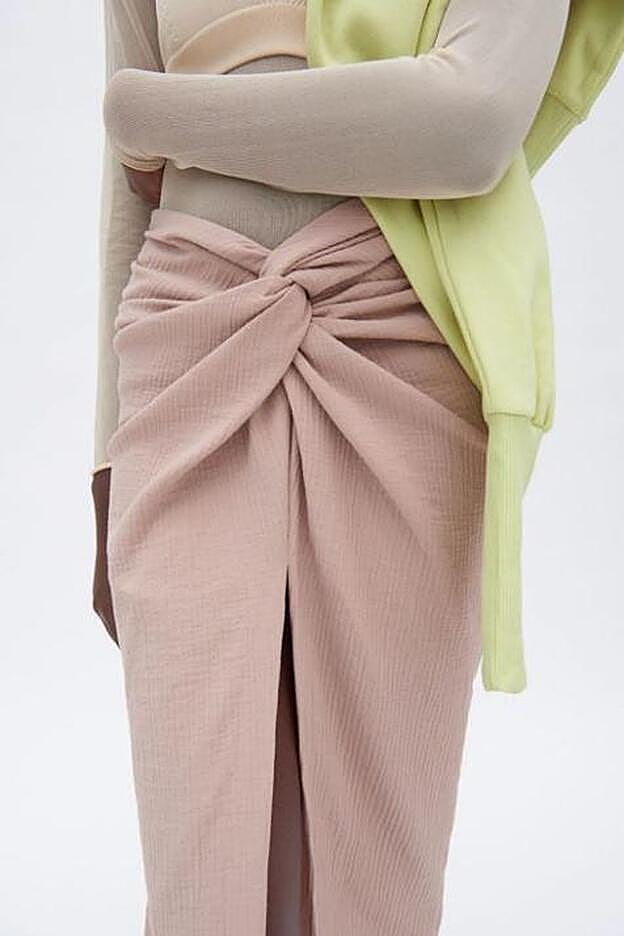 Siguiendo el éxito viral de la falda pareo midi con nudo que arrasó la temporada pasada entre las influencers, Zara vuelve a la carga y se reversiona (como estas otras, que están llamadas a ser los hits de la primavera/verano) con un diseño en rosa empolvado súper favorecedor y que nos gusta tanto (o, incluso, más) que el original.