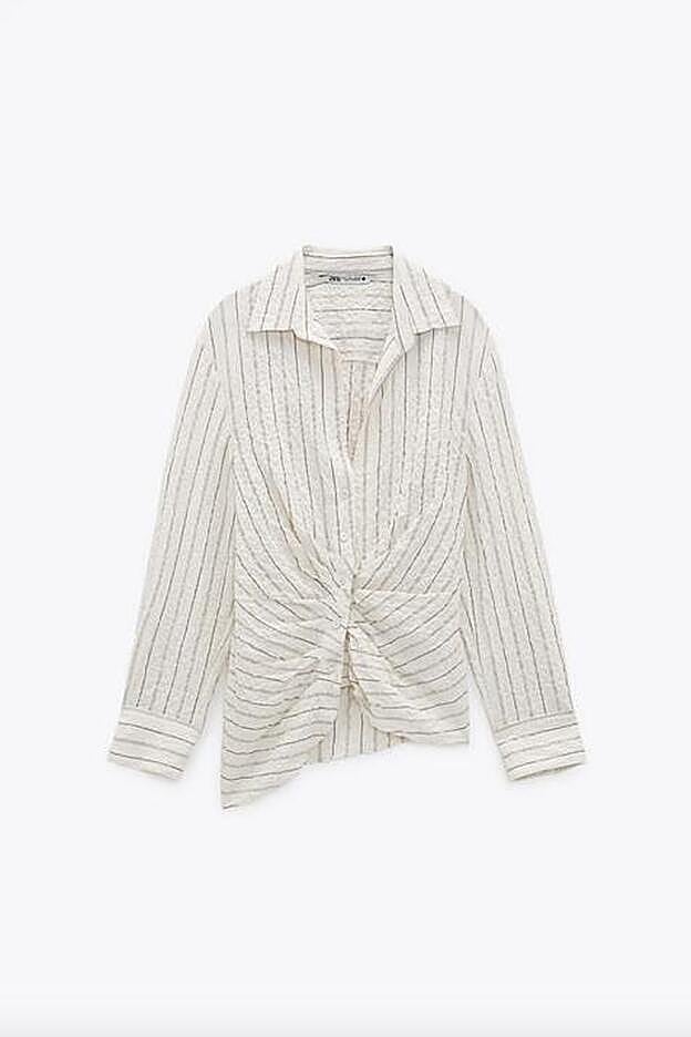 Porque esta camisa de rayas de Zara en blanco roto está confeccionada en tejido con textura y tiene detalle de frunces en el frontal. Un detalle perfecto para estilizar nuestra figura y convertirla en nuestra prenda de cabecera en nuestros looks más espectaculares.