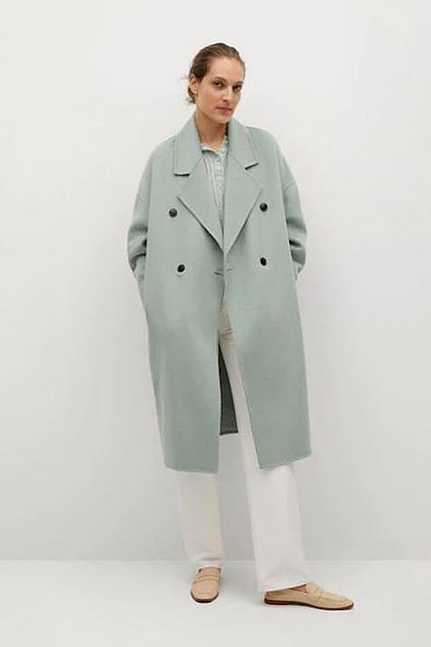 Se trata de un abrigo fabricado en un tejido con mezcla de lana y poliéster reciclado de largo medio y diseño oversized que tiene como protagonista un color verde menta de lo más favorecedor. Un tono tendencia que se lleva muchísimo y que es perfecto para primavera. Con el hombro caído y cierre de botones a contraste, es una prenda que puedes comprar a mitad de precio: en vez de 199,99 euros, por 59,99 euros. No está nada mal, ¿verdad?